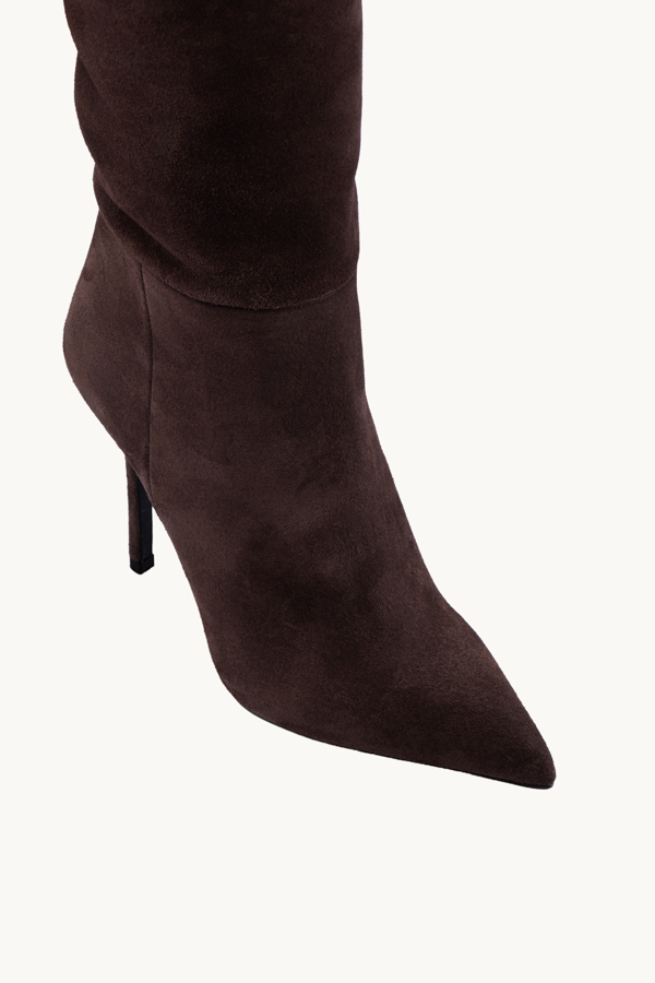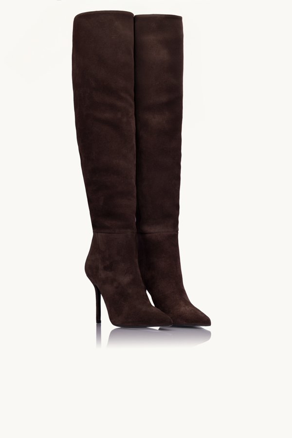 Savršene kožne čizme preko kolene sa špicatim vrhom i tankom štiklom.