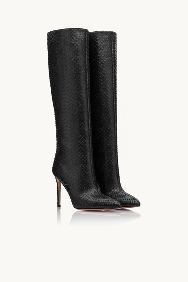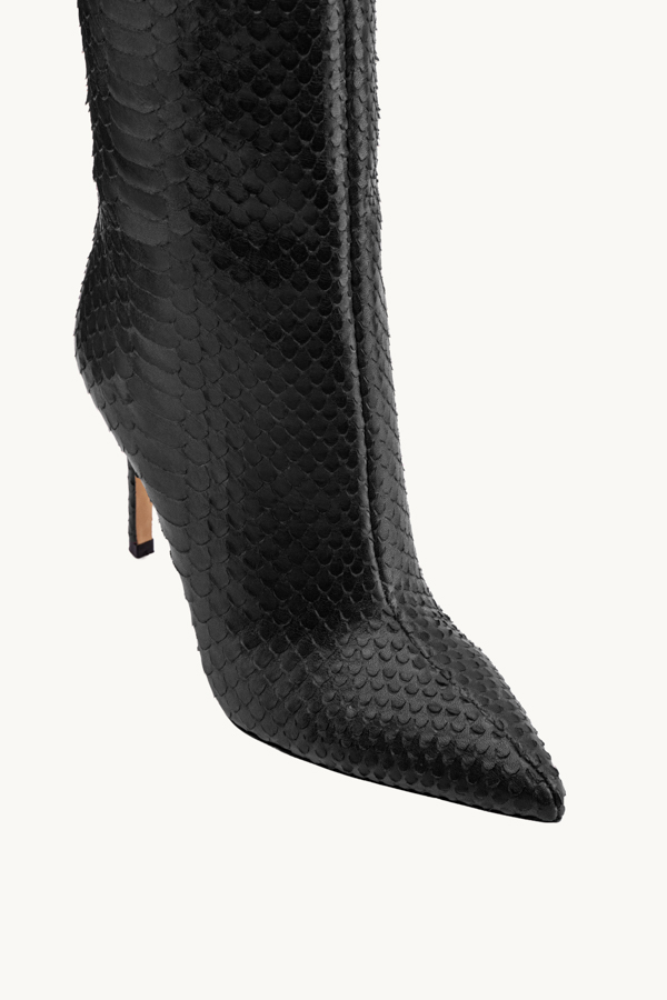 Duboke čižme zmijskog printa sa špicastim vrhom i tankom štiklom.