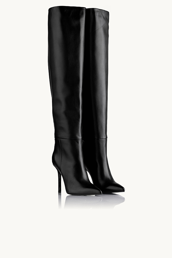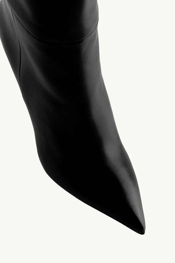 Savršene kožne čizme preko kolene sa špicatim vrhom i tankom štiklom.